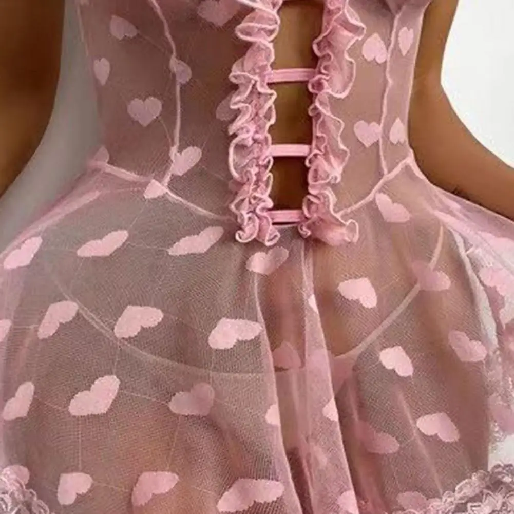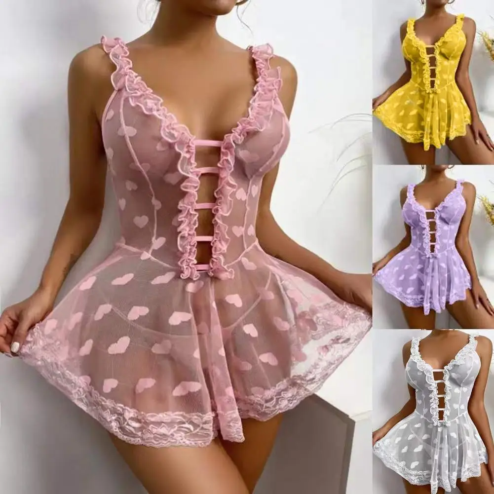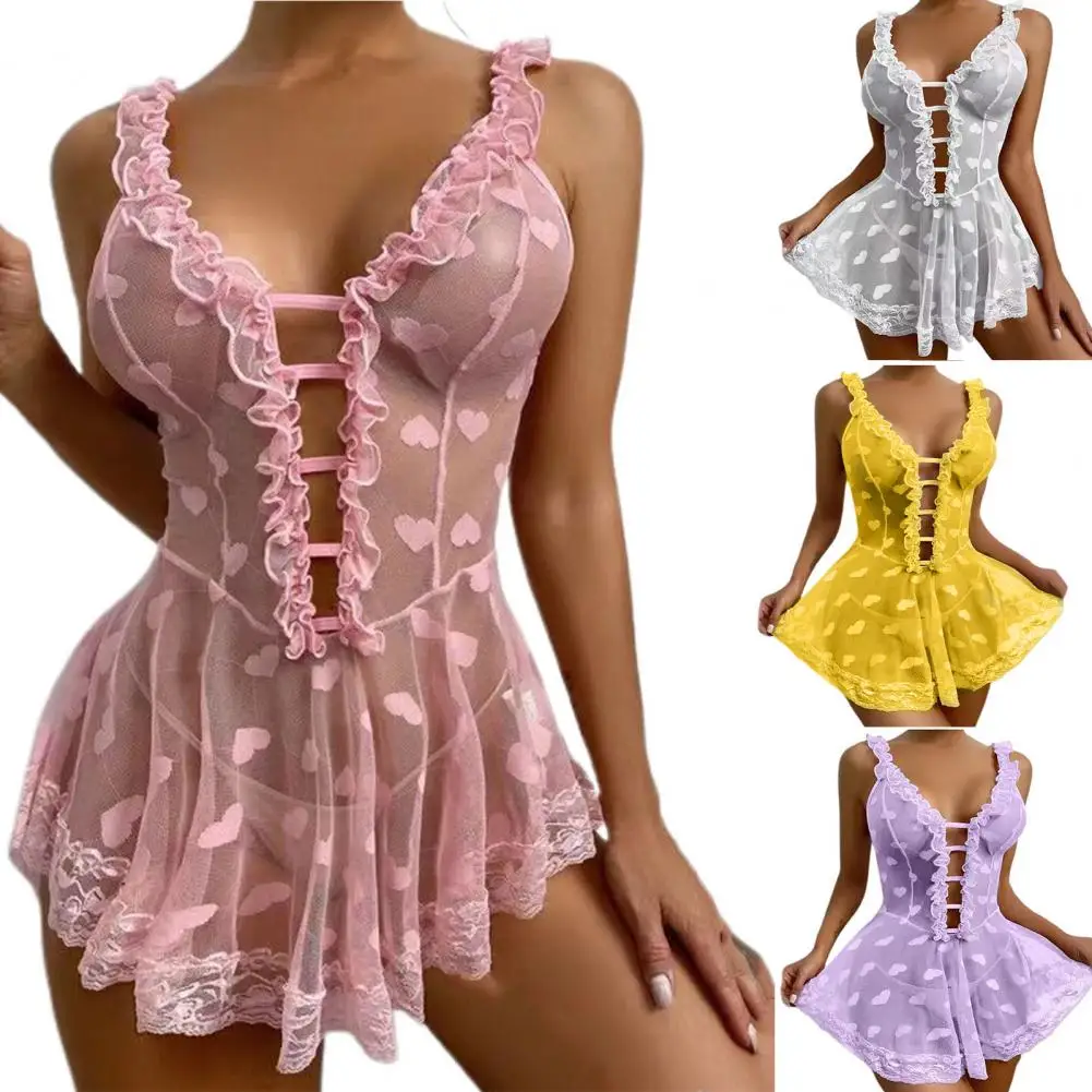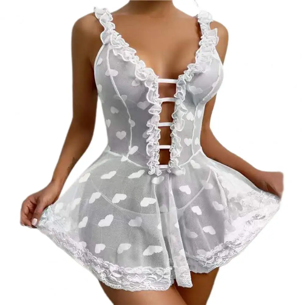 - Elegant Design: Deep V-neckline with beautiful lace decoration and heart pattern details